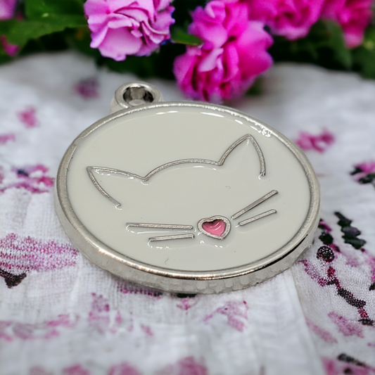 White Cat Tag | Laser Engraved Pet Tag with Cat Face
