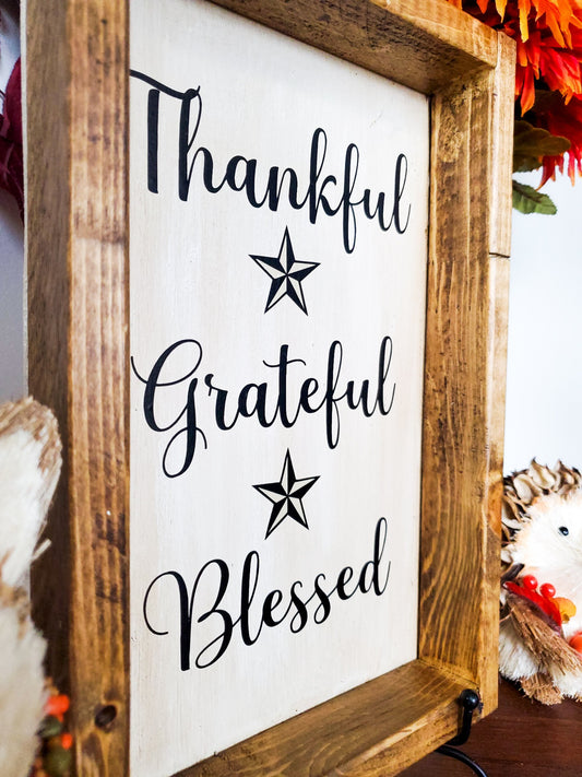 Thankful, Grateful, Blessed Autumn Decor Sign