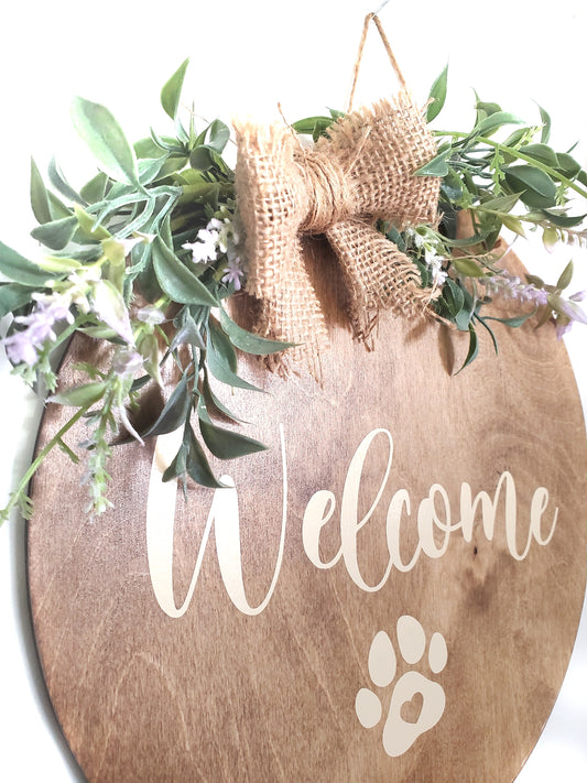 Welcome Your Guests with a Boho-Style Paw Print Welcome Sign - Perfect for Any Home!